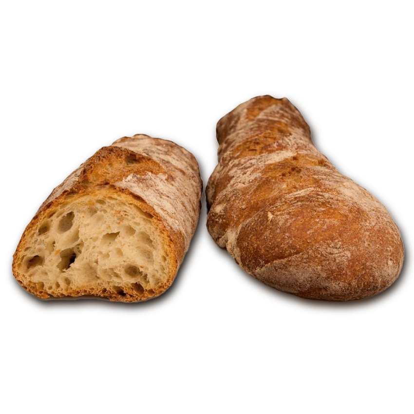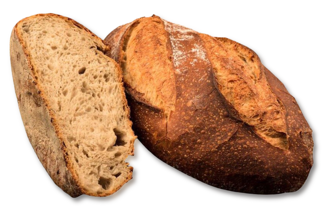 La fermentación prolongada desarrolla de forma natural alcoholes y ácidos orgánicos —lácticos, propiónicos, butíricos y acéticos— que, junto a una cocción lenta en horno de piedra, dan como resultado un pan de corteza crujiente y profunda, miga alveolada, cremosa y ligeramente amarillenta, y un sabor intenso, persistente y lleno de matices.